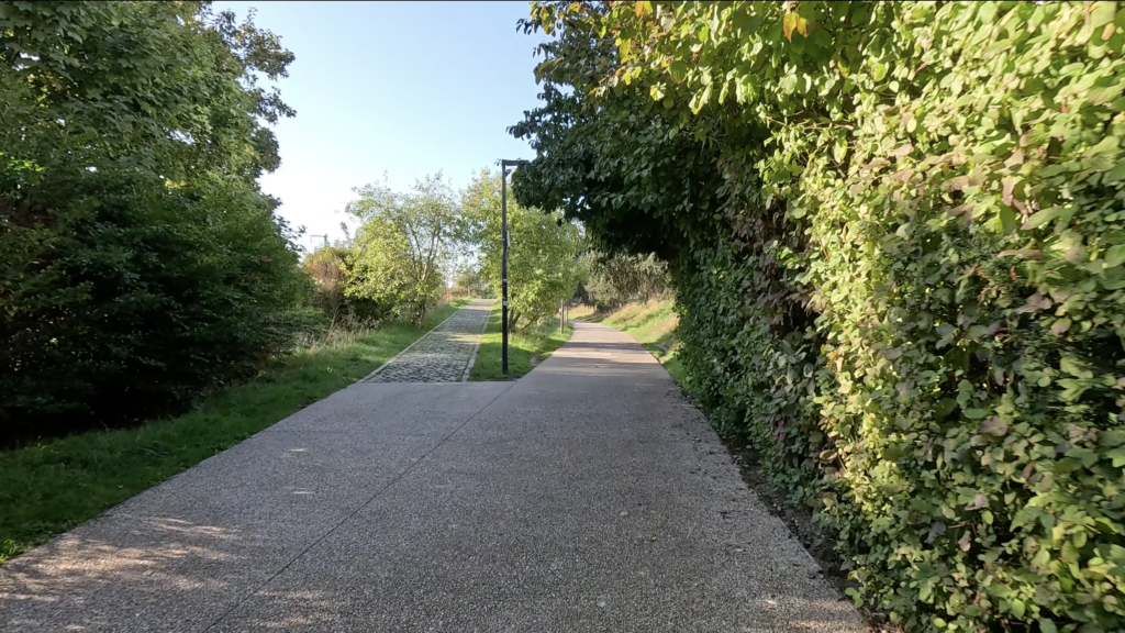 Après Massy, le tracé de la Variante emprunte une ancienne voie ferrée.