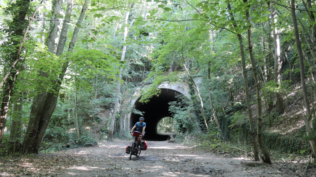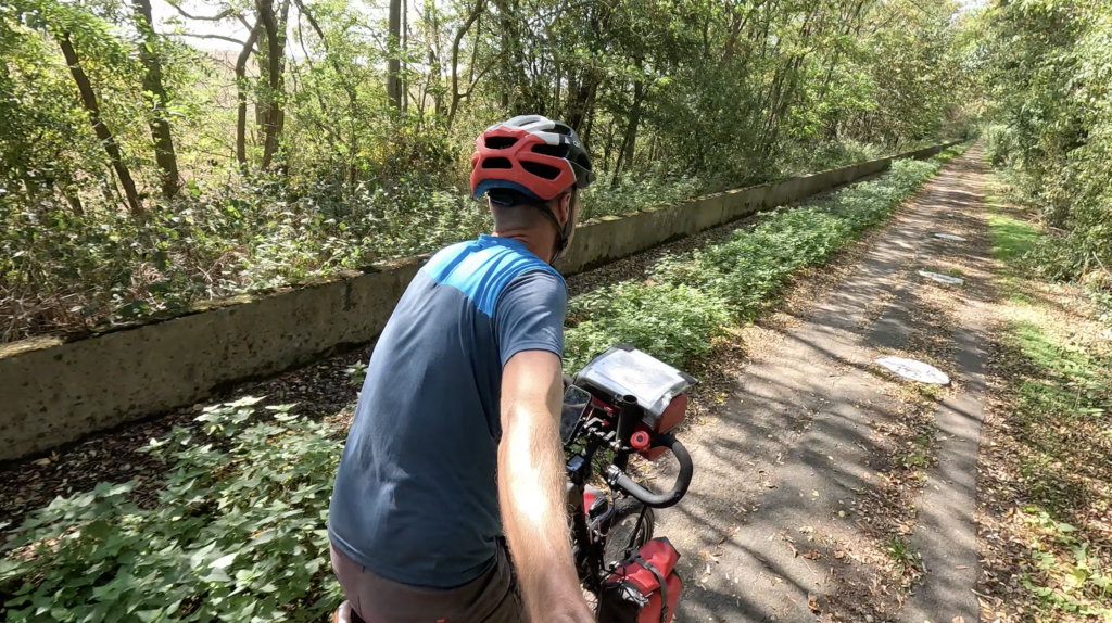 Je roule sur l’ancienne voie d’essai de l’Aérotrain.
